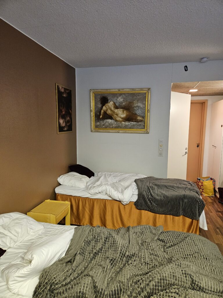 Wir verbringen unsere letzten Nächte in sehr “speziellen” Unterkünften. Nachdem wir das Privileg haben im authentischen “Titanic Zimmer” in Pudasjärvi zu schlafen, geniessen wir Batmans Schutz im Hostel in Jyväskylä. Wir werden den finnischen Humor ganz sicher vermissen (so wie die “Gifflar” Kekse…).